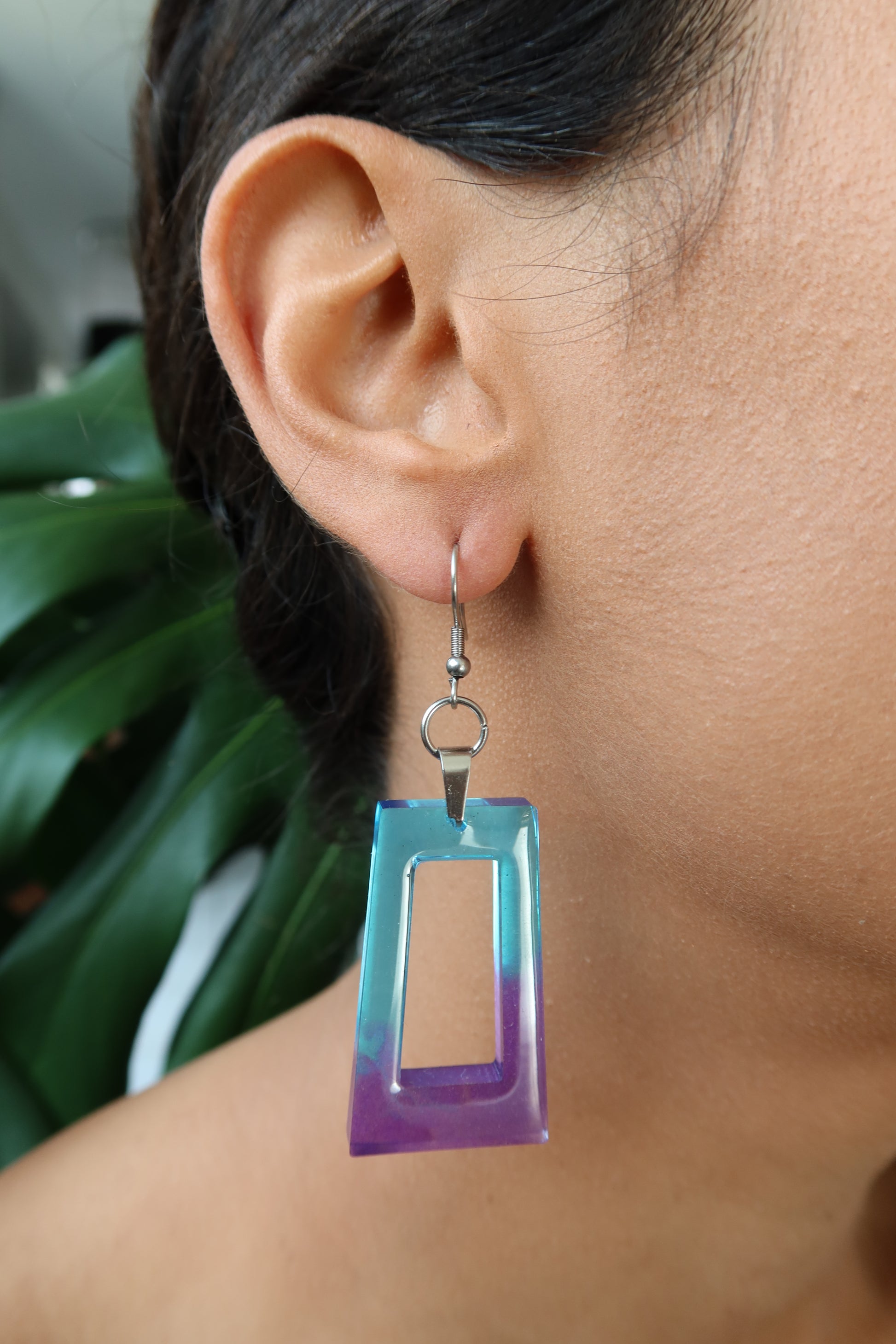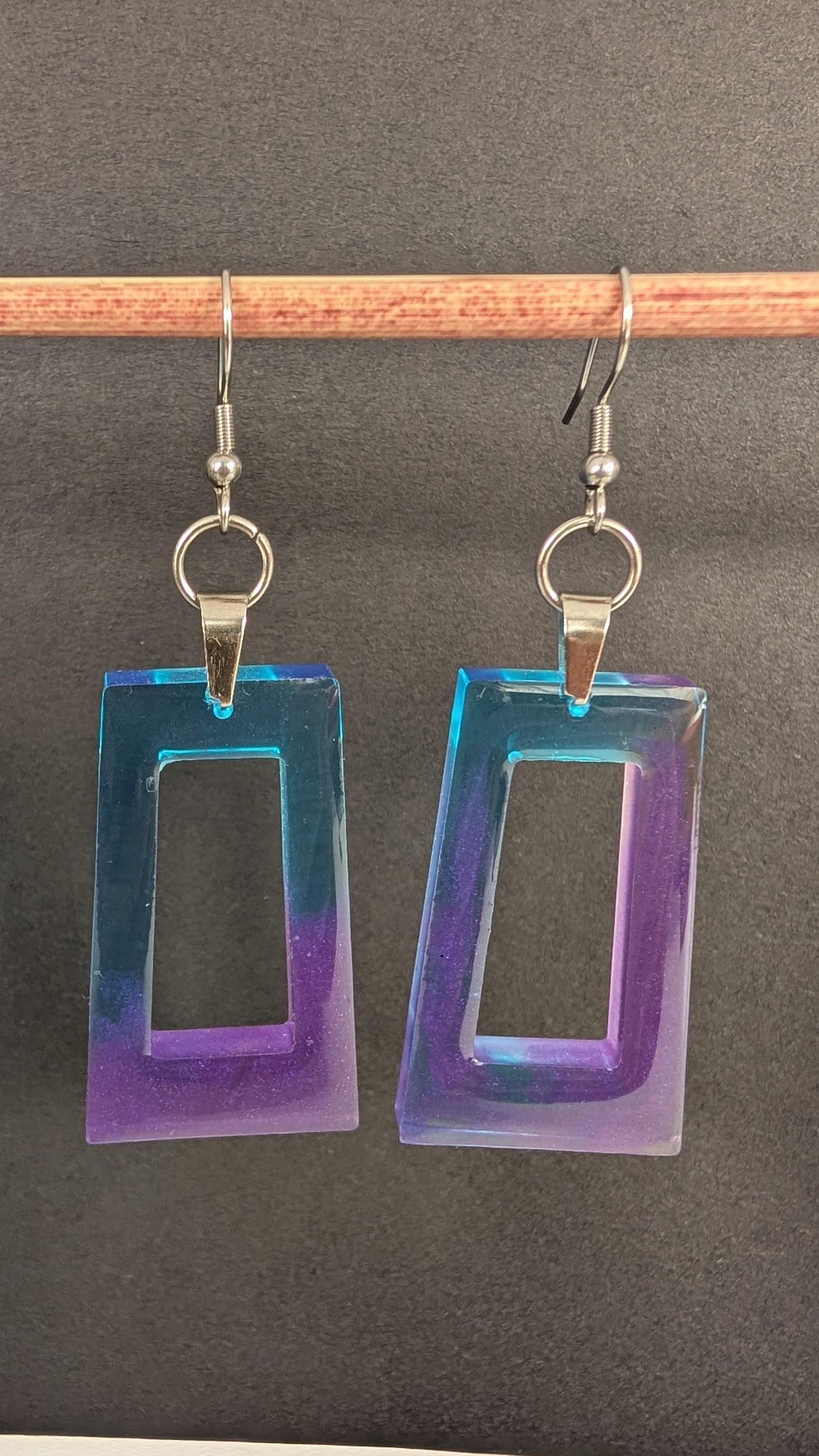 - Boucles d'oreille artisanales en résine époxy aux teintes colorées.